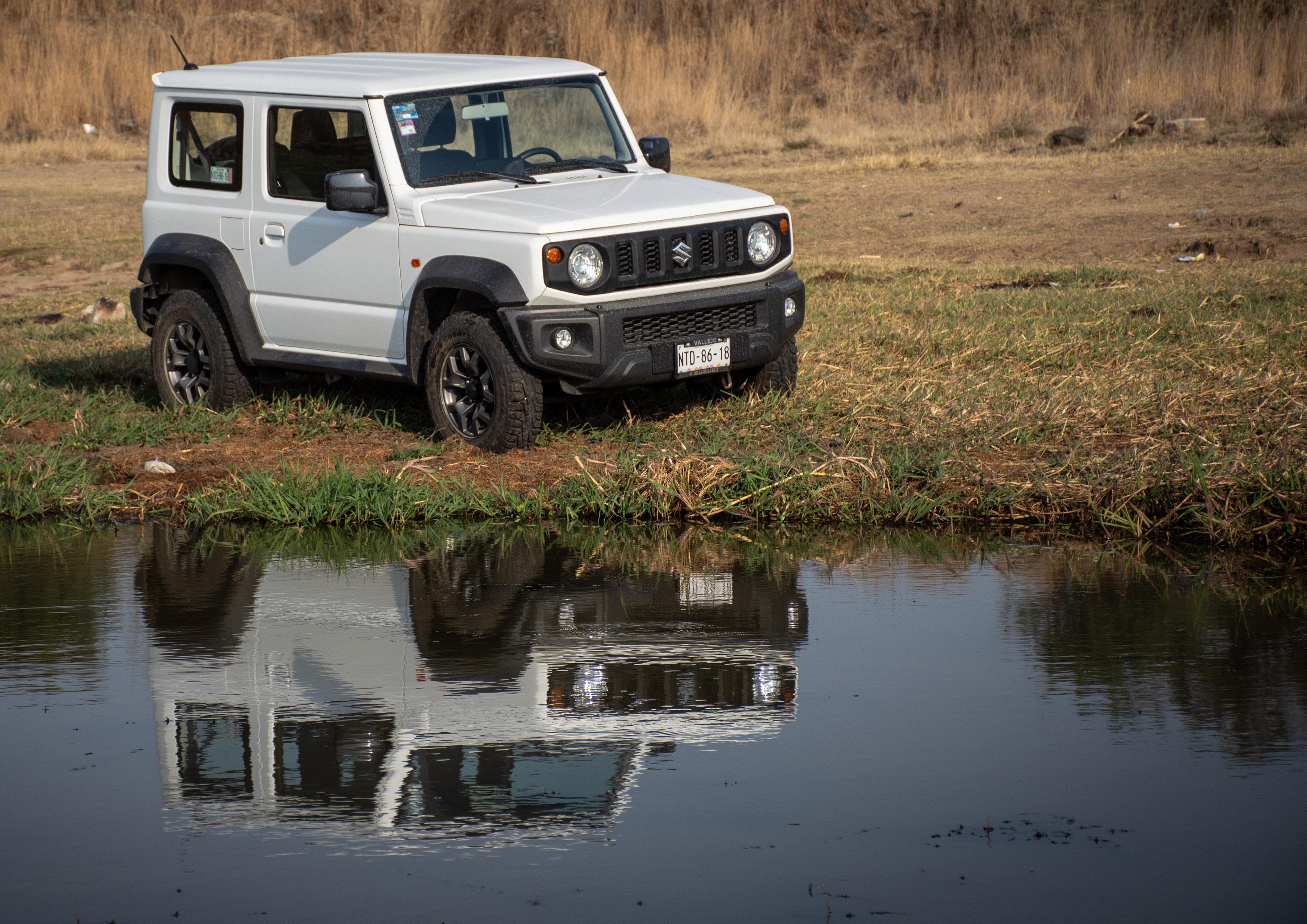 Bajo el cofre se encuentra un motor atmosférico de cuatro cilindros y 1.5 litros, el cual genera 102 caballos de fuerza y 96 libras pie de torque. Quizá no parezcan grandes cifras, pero gracias a su bajo peso, el cual ronda la tonelada, no es de extrañar que sea un vehículo muy ágil. Visto desde este ángulo hay potencia más que suficiente para desplazarse por cualquier terreno. De cara a superar obstáculos, el Jimny juega en la liga de los grandes todoterrenos. Por un lado, sus dimensiones compactas le permiten enfrentar caminos realmente complicados y dar la vuelta en espacios muy reducidos. También nos referimos no sólo a los generosos ángulos de entrada, ventral y salida, sino también a una altura mínima al suelo de 21 centímetros marcada por las carcasas de los diferenciales.
