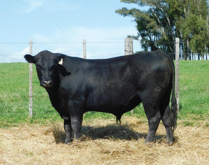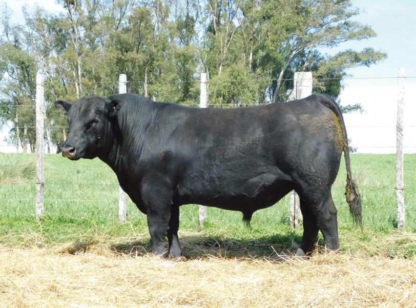 Las vaquillonas también pueden destetar muy buenos terneros. Combinación genética que garantiza facilidad de parto y crecimientos sobresalientes. Toro con muy buena estructura, músculo y largo de cuerpo. Excelente conformación y desplazamientos, con pigmento total y datos de EPD imponentes. Participó en Kiyú y quedó cuarto en orden de ventas