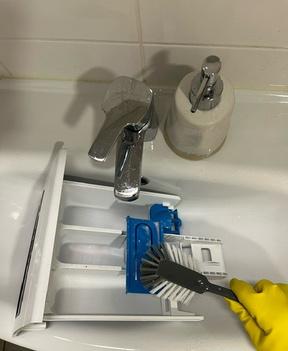 Puhdista koneen pesulokerot esimerkiksi vanhalla tiskiharjalla ja puhdistusaineella.
