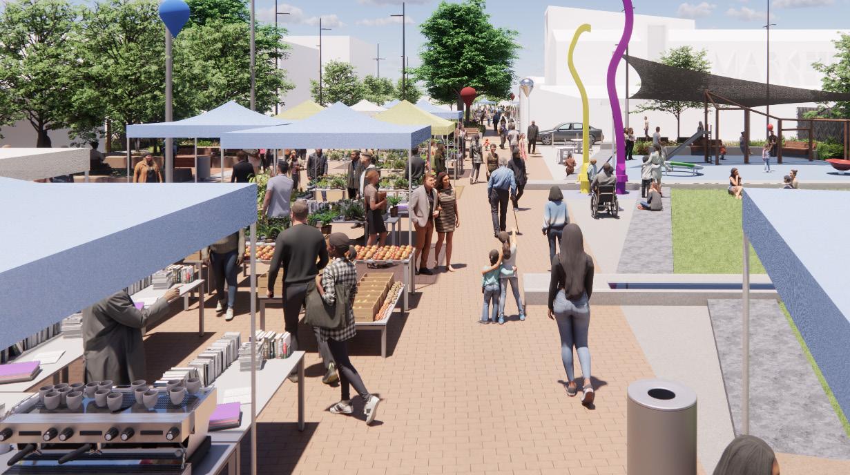 Through enhancing the existing town square and creating new public space along Roulston Street, the aim of this project is to create a safe and connected town centre with more flexibility for events and markets. Overall, being better suited for community requirements.