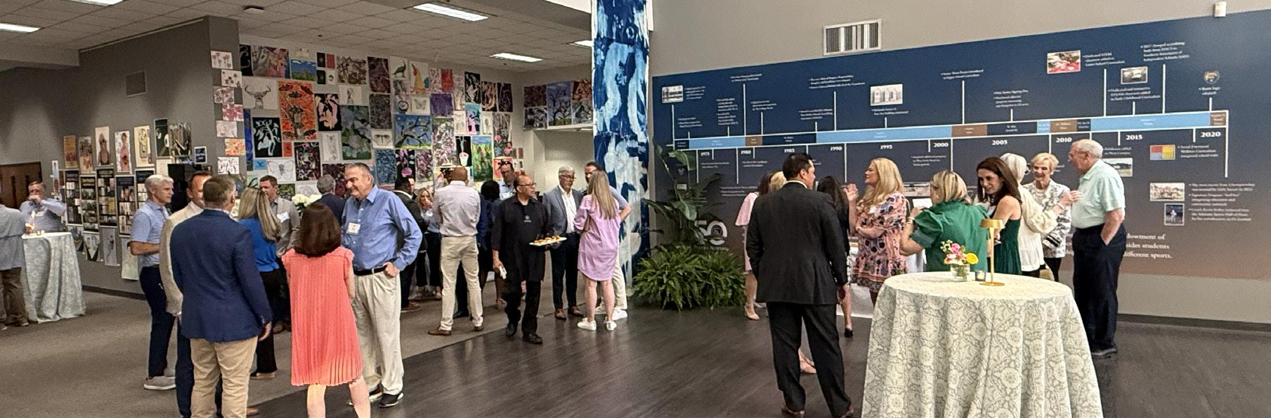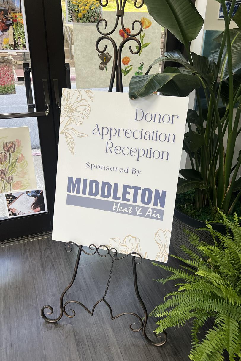 A Donor Appreciation Reception was held in May to thank donors giving $1,000 and up for their support during the school year. The event took place in the Connor Performing Arts Center lobby, where guests also had the opportunity to view the End-of-Year Art Exhibition showcasing student work across a variety of media, including oil, acrylic, watercolor, ceramics, graphic design, photography, fashion, and mixed media. During the event, PA President Rachel Deems and Head of School Garry Sullivan shared remarks expressing appreciation for the impact of donor giving across campus. The event was sponsored by Middleton Heat & Air.