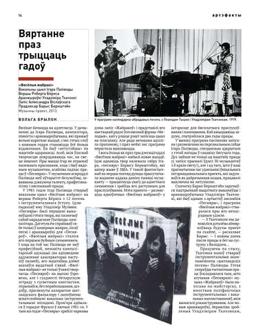 інтэрнэце для бясплатнага праслухоў вання і пампавання. Каб ажыццявіць за думу, спатрэбілася два гады працы. У выніку праграма паспяхова запіса на і размешчана на персанальным сайце Ігара Паліводы, спецыяльна адкрытым з гэтай нагоды ў сакавіку бягучага года. Дух займае не толькі ад маштабу працы (у запісе прымалі ўдзел 30 музыкантаў з 8 краін свету!), але і ад таго, што ў наш прагматычны час удзельнікі ўнікальнага інтэрнацыянальнага праекта, які задум ваўся як дабрачынная акцыя, працавалі выключна на энтузіязме. Спачатку Барыс Бернштэйн заручыў ся падтрымкай выдатнага выканаўцы і аранжыроўшчыка Уладзіміра Ткачэн кі, які быў адным з артыстаў ансамбля «Песняры», і праграма «Вясёлыя жабракі» ства ралася пры яго непас рэдным удзеле. — З Ткачэнкам мы да мовіліся дэталёва абмяр коўваць будучы праект па скайпе, — расказвае Барыс. — І кожны дзень пасля працы я бег на сус трэчу з Валодзем... Прац ую чы па слых у, Ткачэнка наноў стварыў інструментальныя акам панементы «шатландскіх песень» Паліводы. Гэтая сапраўды тытанічная пра ца ўскладнялася тым, што агучаная «Песнярамі» му зыка «Жабракоў» была на піс ан а па-майс тэрс ку, з мност вам пол іф ан ічн ых інструментальных і вака льных напластаванняў, якія вымагалі рэканструявання. Але но выя аранжыроўкі, беражліва зроб лен ыя Улад зім ір ам Ткач энк ам,