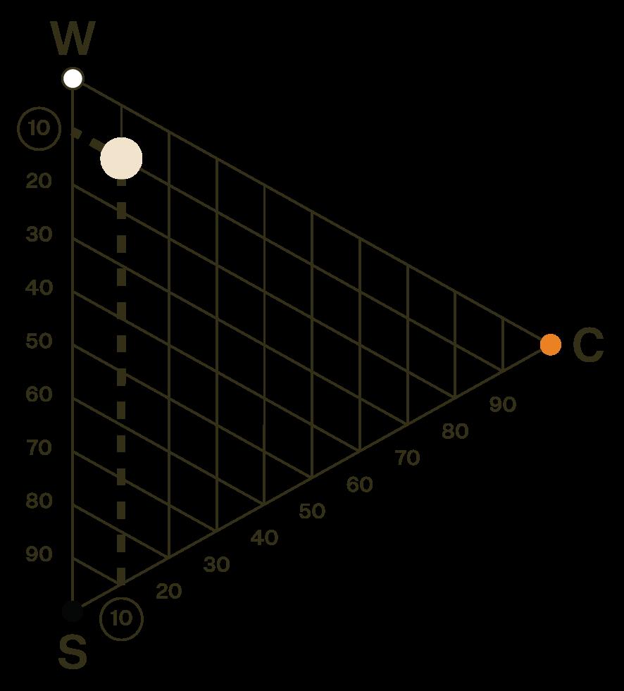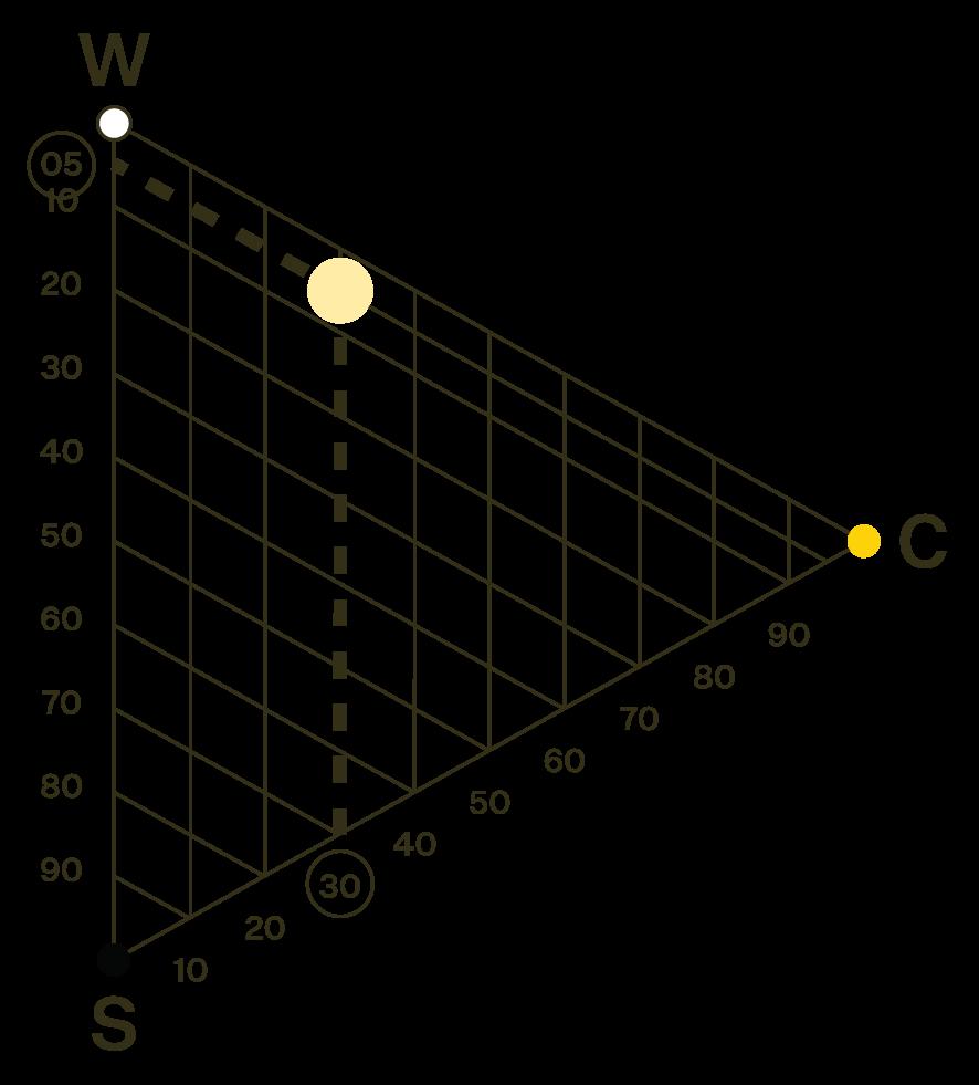 5 prosent sorthet, 30 prosent kulørthet og dermed 65 prosent hvithet.