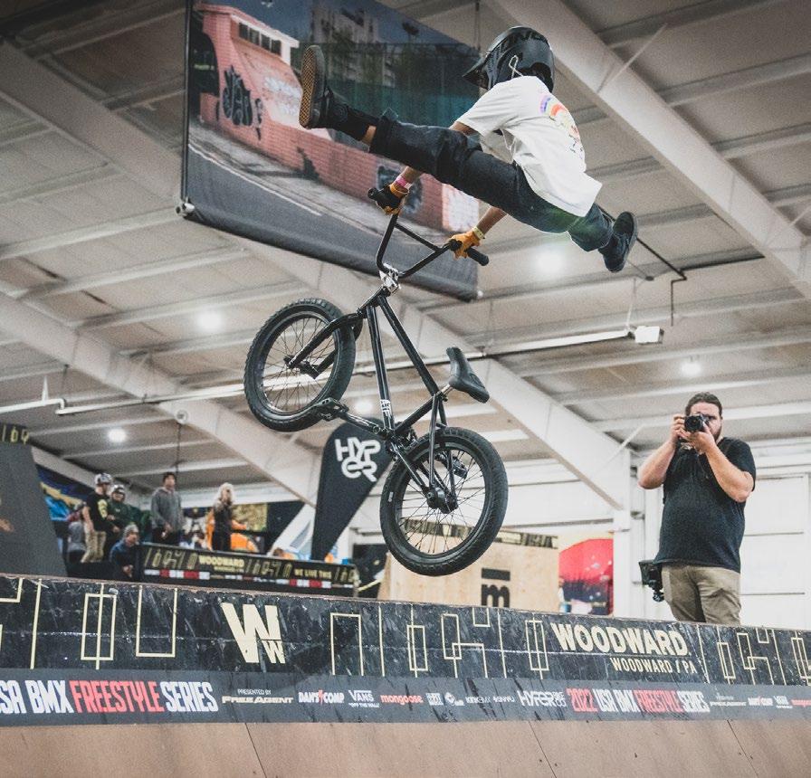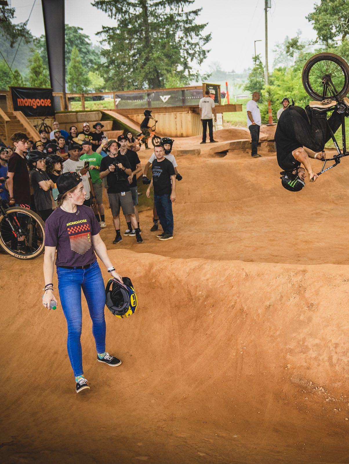 join forces to lead us into Tulsa and the 2022 Grand Nationals. ON THIS PAGE: Kevin Peraza shows off for fans and Olympians at the Mongoose Dirtvana Jam.