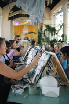 Venez échanger des idées, réaliser votre inspiration du moment sur la toile ou suivre une thématique définie tout en savourant des cocktails signature dans une atmosphère artistique
