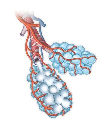 Alveoli: Tiny air sacs in the lungs where carbon dioxide leaves the bloodstream and oxygen enters the bloodstream