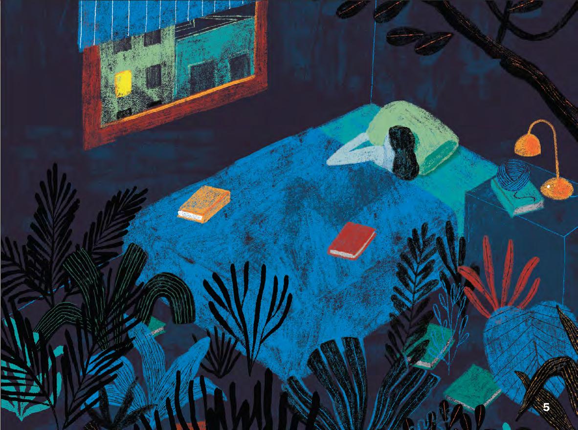 A sensibilidade da arte de Juan Palomino também ajuda a reforçar essa relação de amor da professora pelos livros, quando ela é retratada dormindo, antes de partir para a floresta, com livros espalhados sobre a cama e pelo quarto.