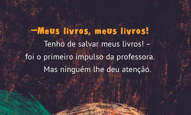 A jovem professora, no entanto, não parava de chorar. O que faria agora sem seus livros? (VASCO, 2021, p. 9, 21 e 23).