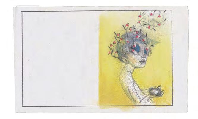 Para facilitar, daremos um exemplo a partir da ilustração da página 17 que acompanha o poema sobre Cecília Meireles. Nela, a menina que representa Cecília está dentro de uma espécie de ampulheta. A escrita poderia começar desta maneira: