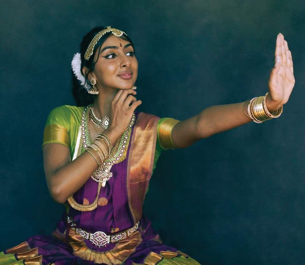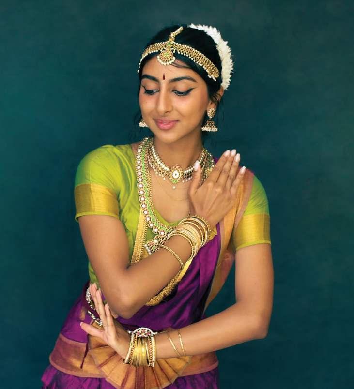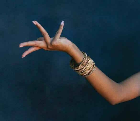 It was not her face that enraptured me, not her theatrical makeup, nor the tinkling bells that shook above her ankles. It was the hands that carved tales of gods red, accompanied by a blazing circle of that same colour in the centre of her palms. My fascination lay in the transformation of something otherwise unremarkable: a pedestrian curve of the wrist turned her hands into blooming lotuses; a careful bend birds. Such is the artistry embedded within Bharatantyam.