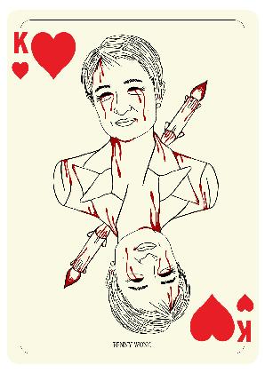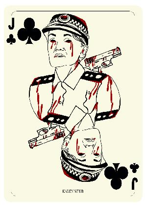 This set has been inspired by the long history of political playing cards circulating since the 9th century, balancing the important roles of entertainment and commentary. With each card played, the hands dealt are stained with blood.