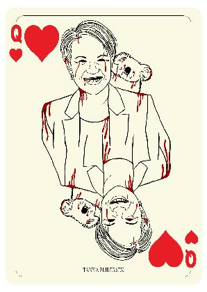 These suits of cards depict prominent political and social figures in their truest forms. From war crimes to ecocides, some of socalled Australia’s finest shed their outer layers to join a deck of incompetent leaders.