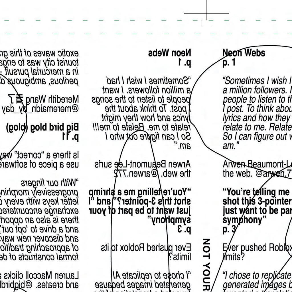With recent experiments in Indesign, I have been enjoying “using it wrong”. With the overlay of personal images of family photos taken as a child in the 2010s, I have reconnected with a sense of childhood play through reminiscing over my first interactions with technology in primary school computer class. Here, the screenshots appear as a disinterest in skill and lack of curation, yet the design’s resolutions speak to the unique position Gen Z finds themselves in. Where we are inescapably fused to digital media, software and platforms, with our fingers progressively morphing into letter keys with every digital exchange encountered, there is also an opportunity and a drive to ‘opt out’, play and discover new ways of approaching traditional formal constructs of design.