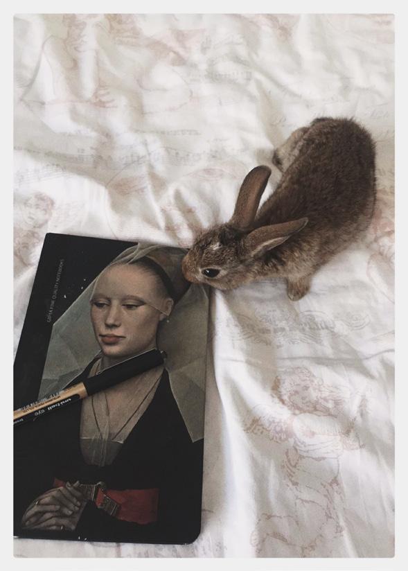 I’m in my bedroom, smoking a cigarette out the window. I can see a ghost across the alley with long black hair. I don’t trust my eyes at first, thinking it must be a distortion made by raindrops on the window, a peripheral daydream. But the feeling, unlike anything I’ve felt before, makes it real. I start to record what I see in my notebook. I expect the vision to fade away as I replace it with words, but when I look away and back again, she’s still there. I know it’s all in my mind, but I’m looking at it with open eyes. When I let go of my fear, angels appear. A flower morphs into hands cupping dirt.