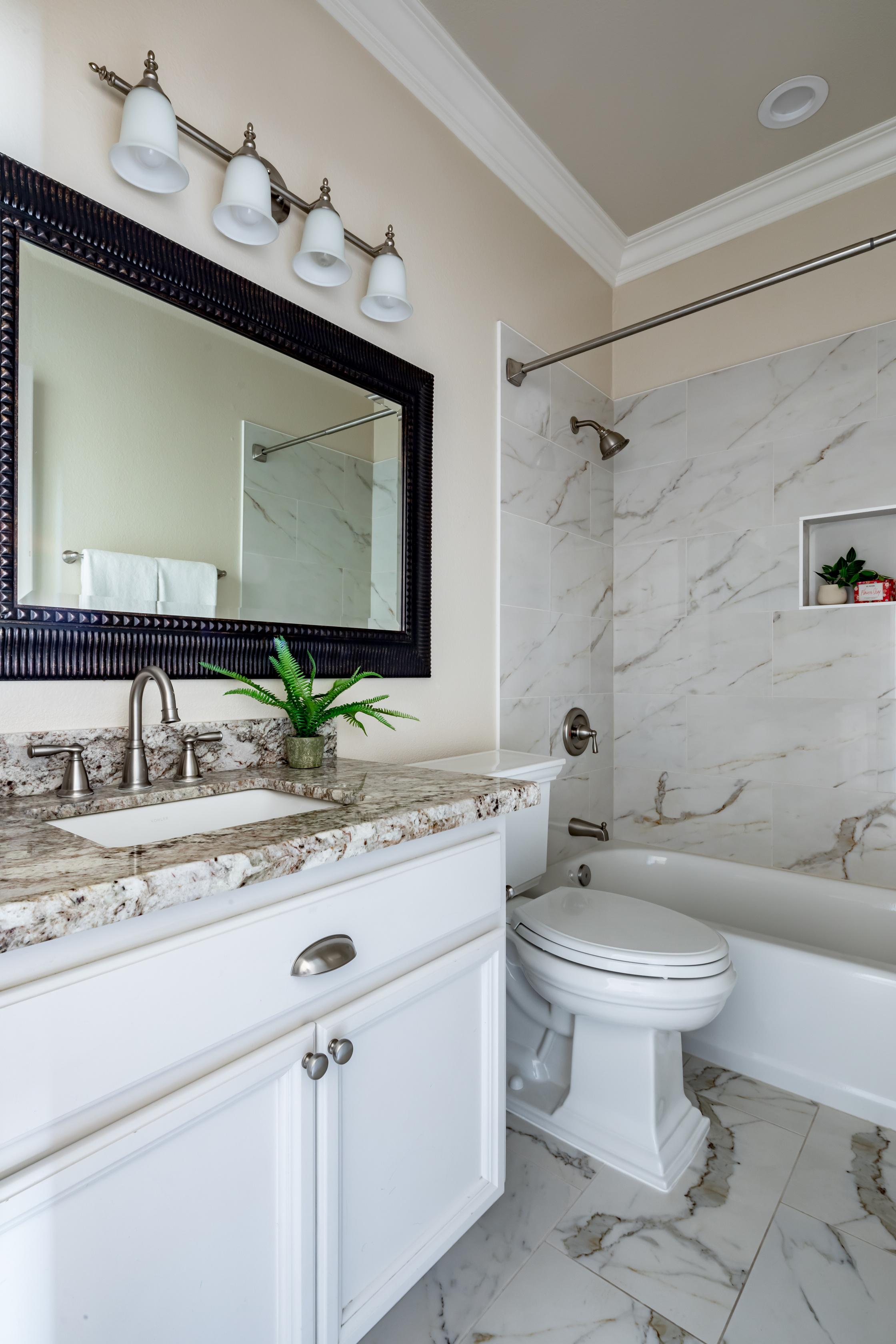 This inviting second bedroom offers a fresh, adaptable space, complete with a sliding closet and built-in organizational grid, perfect for a second bedroom or a functional home office. The sleek, adjoining bathroom is thoughtfully improved with a granite-topped vanity and a beautifully tiled bathtub, catering to both comfort and modern living, an ideal complement to a dynamic lifestyle.