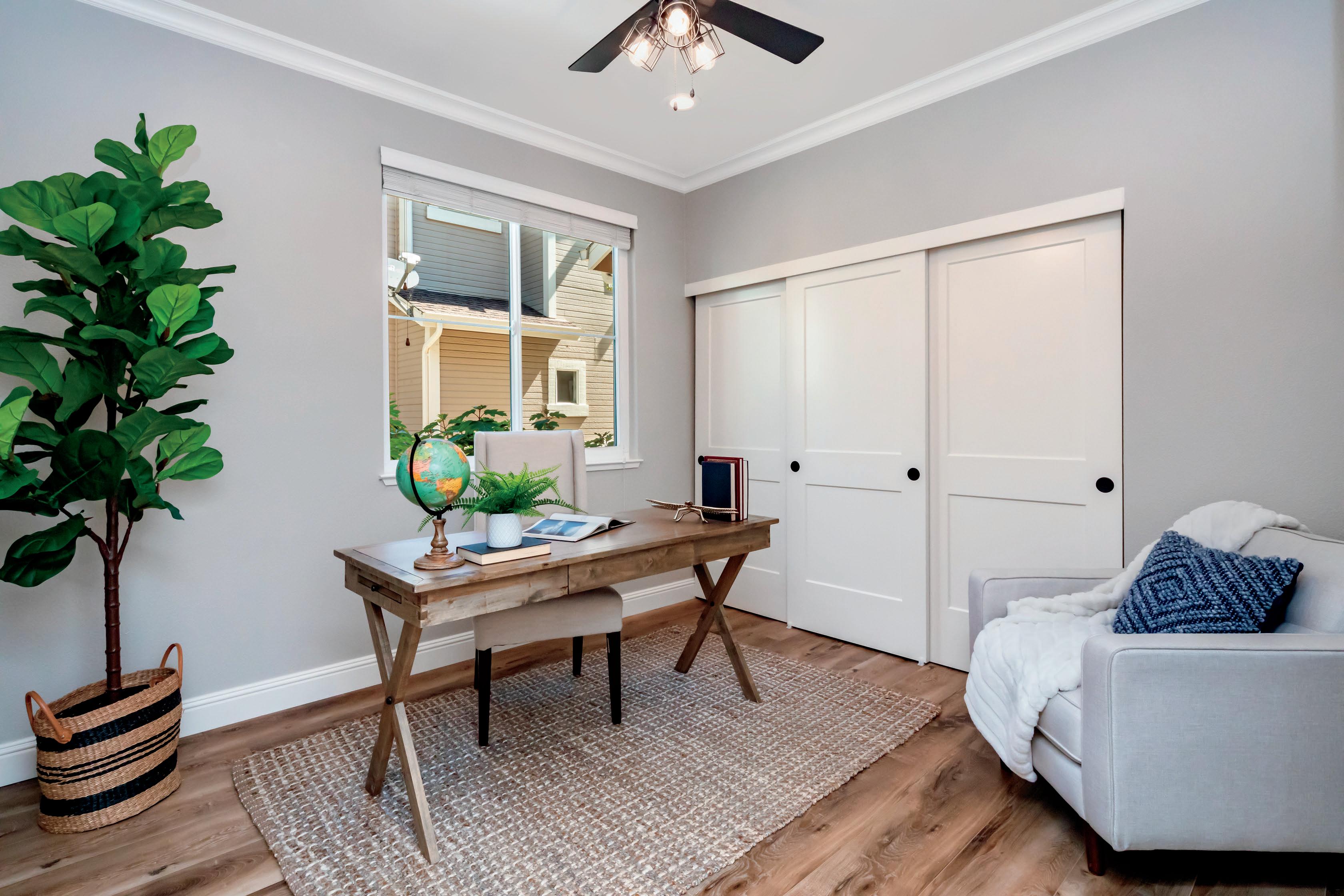Experience the versatility of the first-floor bedroom in this remarkable home, offering endless possibilities as an office or bedroom. With its double door grand entry, this spacious room provides a sense of grandeur and flexibility Adjacent to a full bathroom, convenience and comfort are effortlessly combined, ensuring a seamless living experience. Discover the freedom to adapt and personalize this remarkable space to suit your unique lifestyle needs.