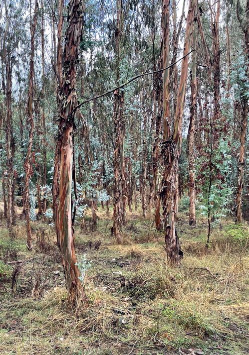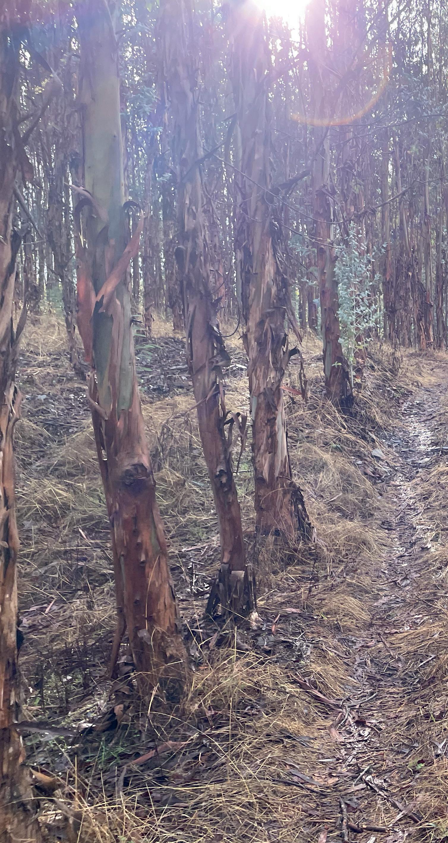 De jonge eucaliptusbossen op de naast gelegen gronden vormen daartegenover weer een risico op branden. Het is dus ook alert leven in een vluchtplan.