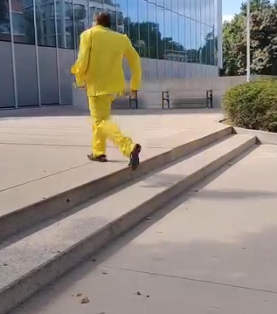 Zo hier en daar laat hij zich zien; de gele man. Een mysterieuze verschijning die op geheimzinnige wijze terloops opduikt in de openbare ruimte. Er is weinig over hem bekent.