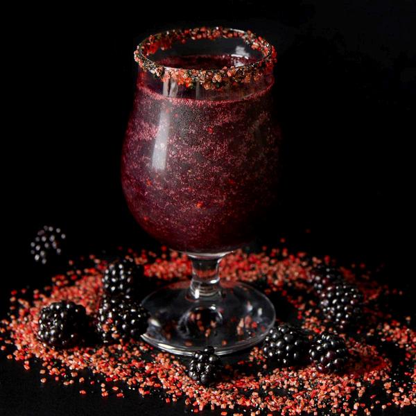 Combine red salt and black sugar on a small plate. Cut lime in half and rub on top of a margarita