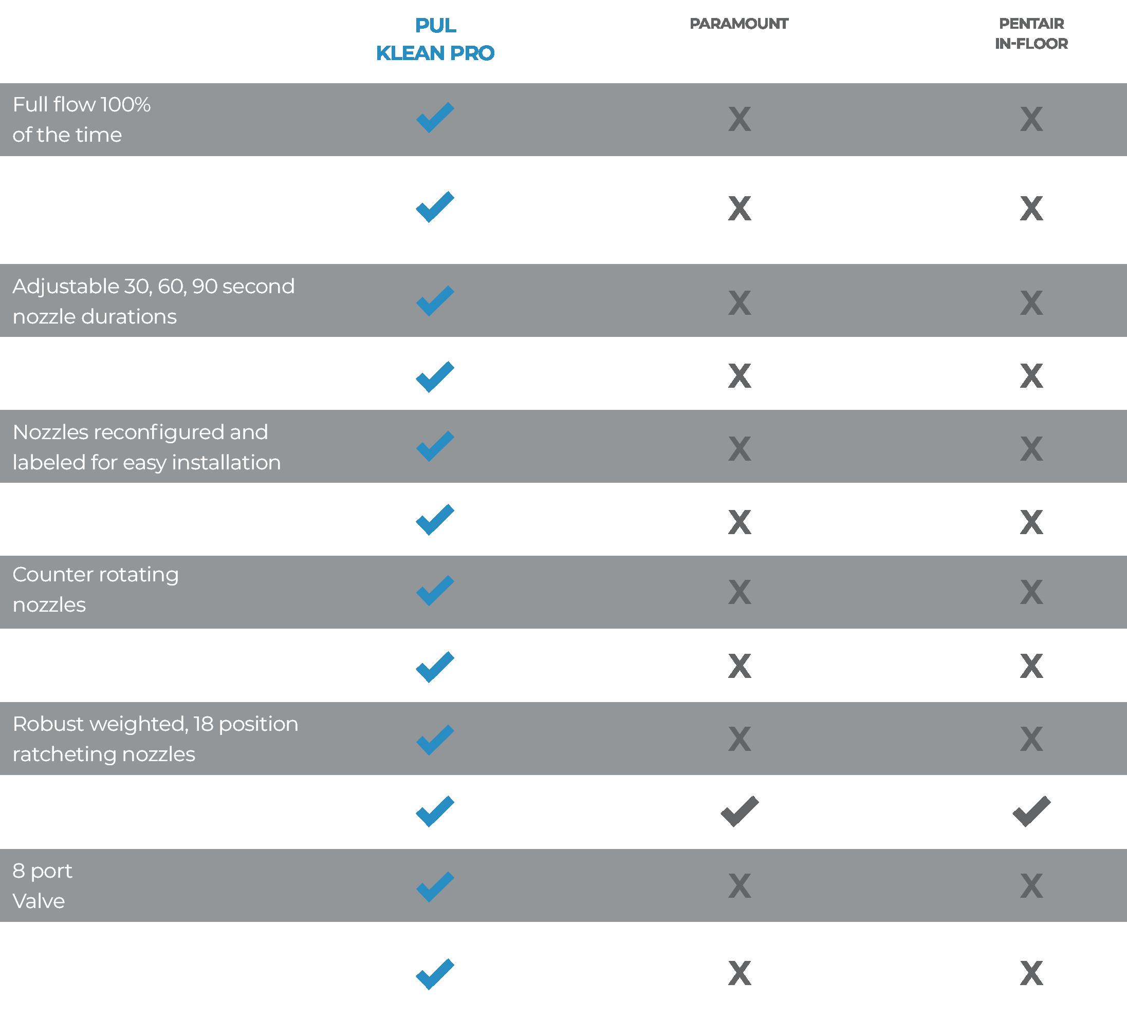 This PUL Klean Pro cleaning feature utilizes a combination of PUL Jets and PUL Conekt logic to produce a strategic movement of water around the drain to optimize the collection and removal of dirt and debris.