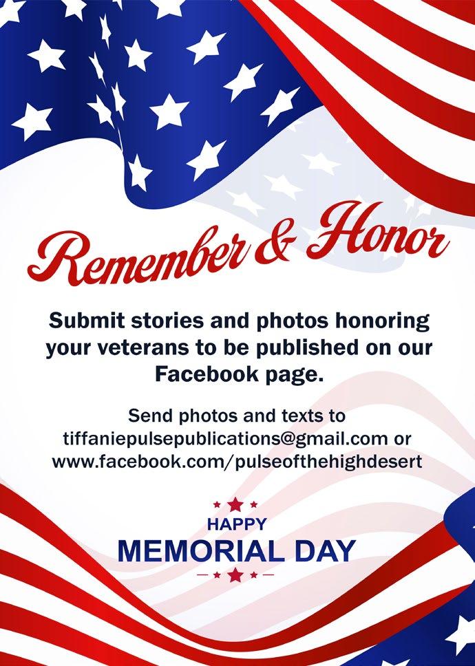 3 PULSE PUBLICATIONS May 2024 Editorial P O Box 290066 - Phelan, CA 92329-0066 10405 Mountain Road - Piñon Hills, CA 92372 PULSE PUBLICATIONS TIFFANIE WILLIAMS 1 442 364 4884 Tiffanie@pulseofthehighdesert.info DEBBIE WALKER 1 760 900 9429 DWalker@pulsecustompublications.com JAMES CONKLE Publisher 1 760 617 3991 jim@motherroadenterprises.com 66jimconkle@gmail.com LORI WESTON 1 760 680 9472 Lori@motherroadenterprises.com Jim Conkle Our Writers John R. Beyer Collectors Edition John Beyer John Beyer has been published in numerous magazines, newspapers and the like for decades, writing on a variety of topics. John Wease John Wease is a published author, with his modern-day western fiction novel “The Horseman” available at the usual online sources. Ann Miner Parkinson’s Advocate eannminer@yahoo.com 760-954-2859 Jaylyn and John Earl Happy Wanderers Exploring the Mystery and Majesty of the Southwest Deserts thedesertway.com Marcy Taylor 1 760 985 1918 mltaylor@gmx.com JORGE LEANDRO RODRIGUES Graphic Designer 55 16 99991 0229 leandro.works@gmail.com John Paul Garner John is a retired high school football coach and veteran. He has published two books, lives in Barstow, and loves being a member of the HIgh Desert branch of the California Writers Club. Liz McGiffin 1 760.887.3427 Published author in local magazines, newspapers and book/Borrow SmartRetire Rich. Representing Senior Kicks Club Inside • News 4 Veterans - Page 8 • A Chat About Parkinson´s - Page 9 • Marcy’s Musings - Page 22 • Don’t miss up... events are fillin’ up!Page 27