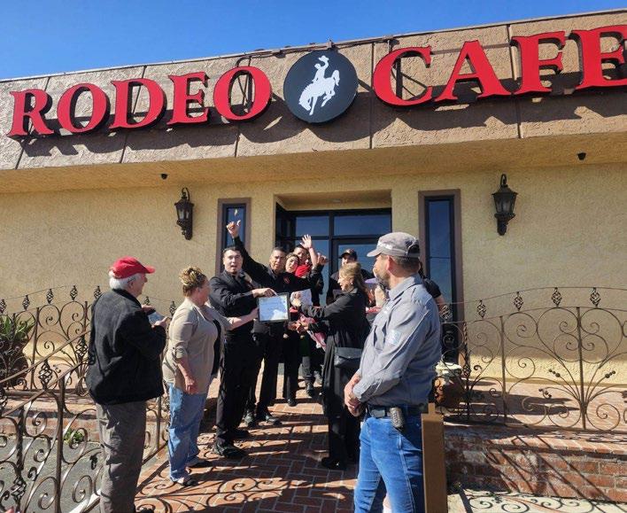 ON FRIDAY APRIL 19TH a Ribbon Cutting ceremony was held at the new Rodeo Cafe in Pinon Hills. This is their 5th location and first in the High Desert area. The event was hosted by the Pinon Hills Chamber. The owners, who are also the managers have turned this location into a very nice restaurant, or as they call it a Cafe.
