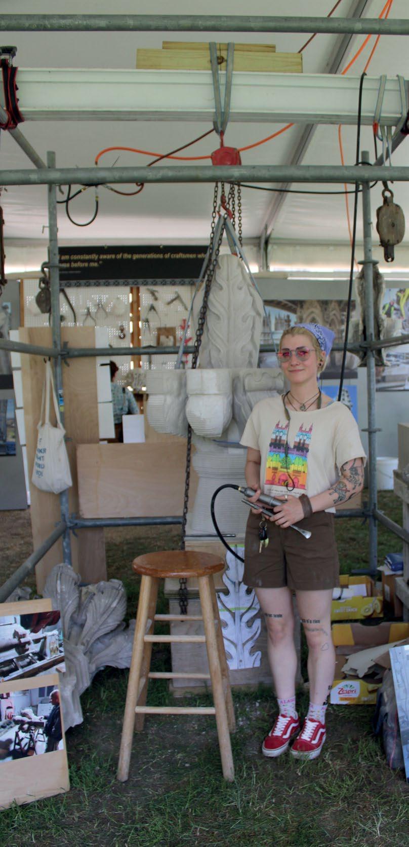 Brianna was busy discussing her trade with a group of visitors. With a gentle nudge of a wooden mallet, she easily and cleanly chipped off a rough edge from a large piece of granite with a medium-sized chisel. The cut was perfect, and she talked the entire time.