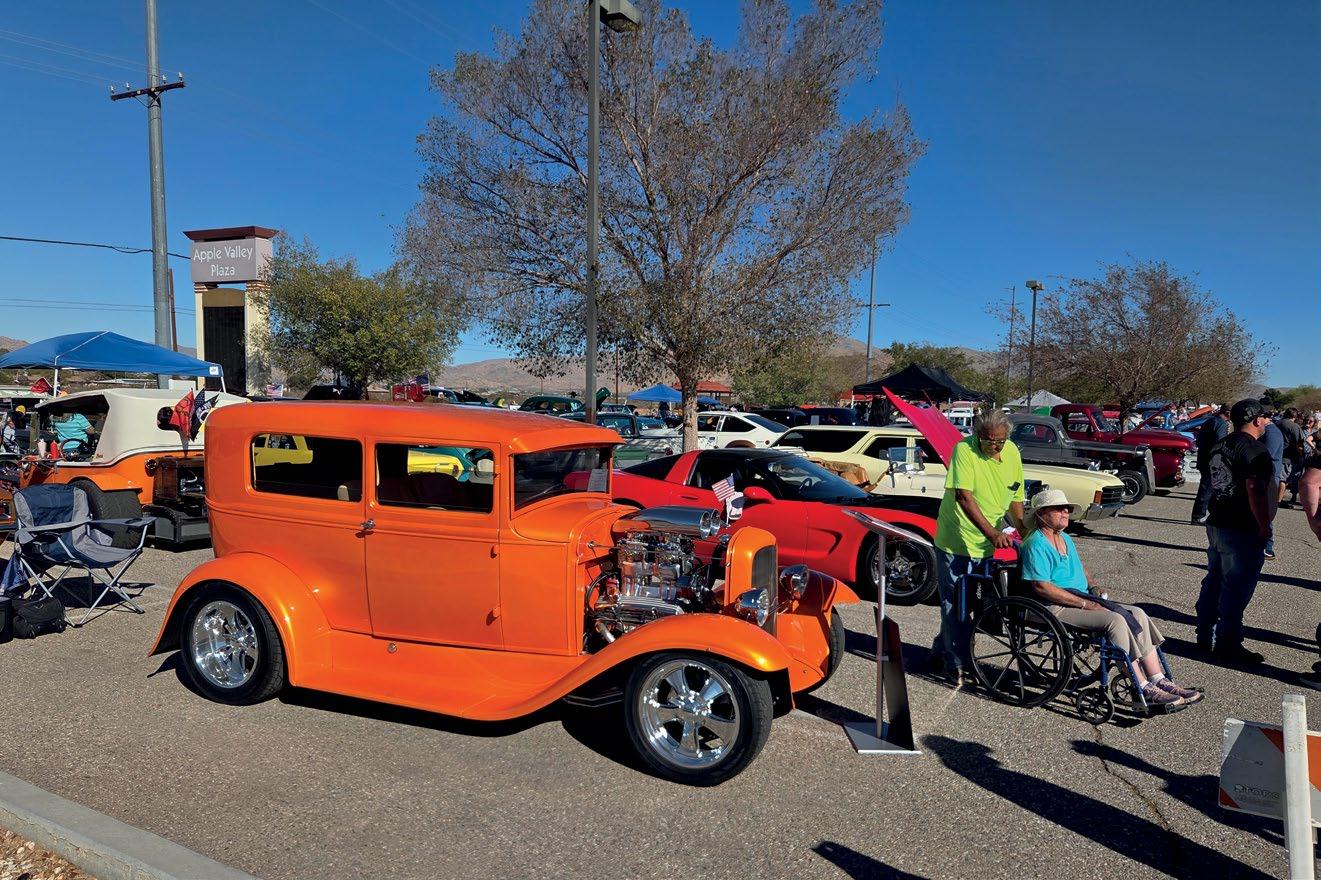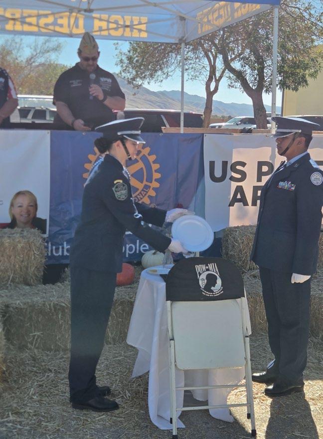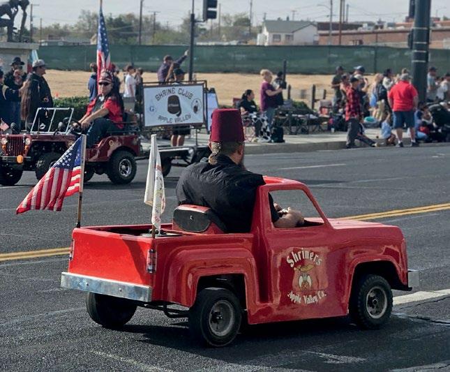 VETERANS D Ay WAS CELEBRATED in style in both Victorville and Apple Valley Tuesday, November 11. Starting at 9:00 AM, the 29th Annual Veterans Day Parade rolled, marched, and danced its way down Seventh Street, the old Route 66, ending at the Veterans Statue at Forrest. Student groups included Air Force and Army Jr. ROTC units, a large combined California Cadet Corps marching group representing several schools, Young Marines, and four marching bands. Other groups represented were two American Legion posts, DAV, Jeepers, and Tuskegee Airmen, as well as Shriners, Corvettes for Vets, Victorville City Council members, and representatives from various city departments.