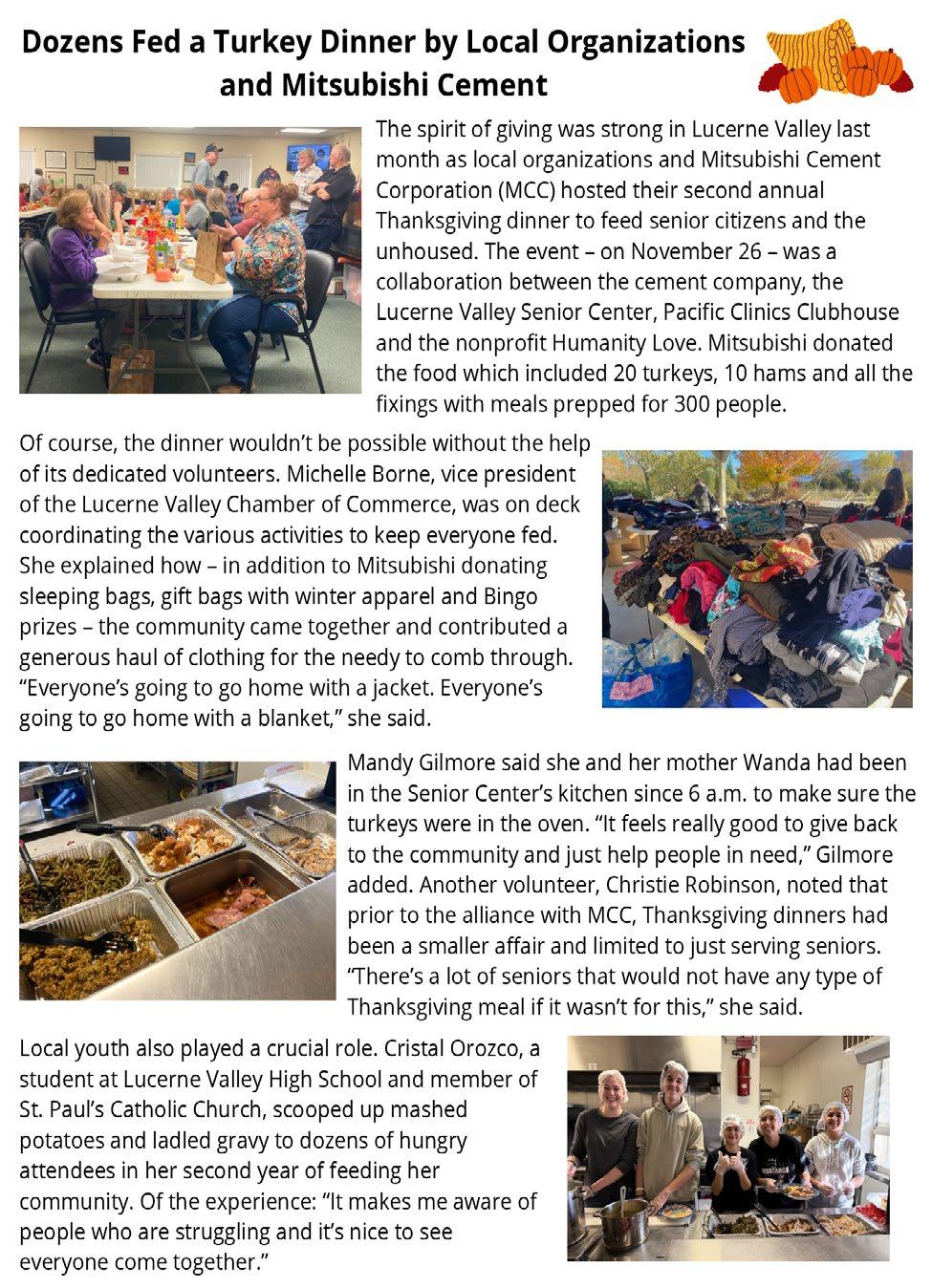 Williams is a very supporter, while Barbara Rose has stepped forward and made a proclamation, while Carmen Hernandez is on the board for the Mojave Desert Air Quality Management. They gave us a grant for a utility vehicle to help our maintenance personnel.