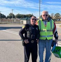 Elizabeth Ross was unable to attend, Santa's little elf will make the delivery. Rounding out the scene, Art Moss is invited back on stage for the photo op, as he definitely qualifies for the honor.