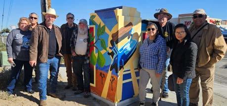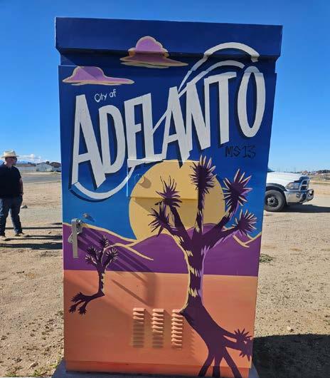 January was Adelanto utility box month, when we visited eight art installations stretching from Palmdale Road on the south to Chamberlain Way on the north, none too far from Highway 395. This is where History and Art collide, as Vee's creations tell the story of this interesting historic desert city. Here you can meet E. H. Richardson, inventor of the steam iron, and see colorful tributes to the pear and apple orchards, desert wildlife, and the iconic joshua tree. Youth sports are represented near an elementary school,