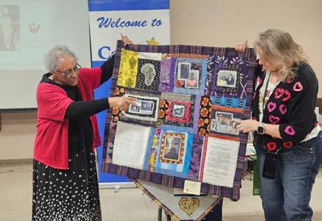 and other pieces of art that all have a story to tell. Theresa shared her family's story, pieced together over the years like her quilts, the inspiration for much of her artwork.