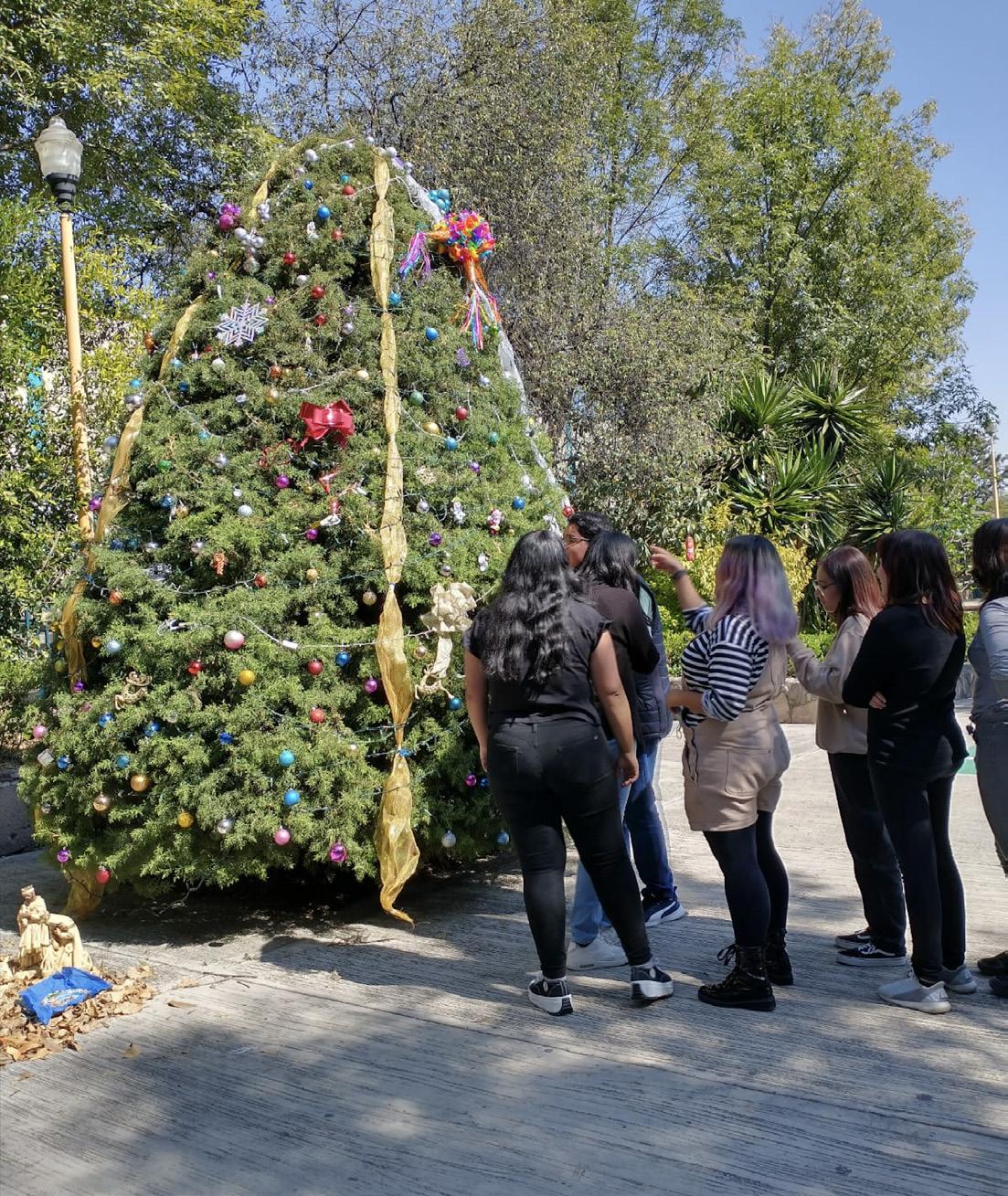 Desde tempranas horas, el martes 6 de diciembre llegaron cajas con esferas, escarcha, muñecos navideños, ganchos y series de luces para comenzar a adornar. A los pocos minutos, la atención del alumnado se centró en dicha actividad, sumándose a las y los que ya se encontraban en el punto de encuentro para decorar el árbol natural que se encuentra en el pasillo. La participación se realizó con mucho entusiasmo. Después de un par de horas un grupo de alumnas permaneció hasta el final para terminar de colocar todos los elementos. Gracias al éxito de la convocatoria, se extendió una segunda para agregar al pie del árbol los regalos y el nacimiento.