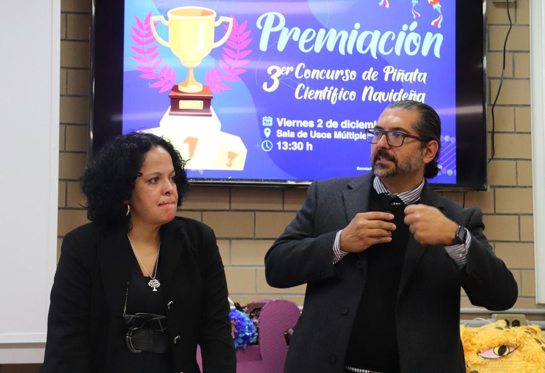 El viernes 2 de diciembre de 2022 a las 12:30 horas se llevó a cabo la premiación del tercer concurso de piñata científico-navideña del Sistema de laboratorios para el desarrollo y la innovación, Siladin. Esta edición tuvo la fortuna de ocurrir por primera vez de forma presencial y contó con la asistencia del director del plantel, Keshava Quintanar Cano, así como de algunos integrantes del jurado. Este último estuvo conformado por siete docentes de las distintas áreas, quienes evaluaron el desempeño de los participantes gracias a las evidencias recibidas. Entre estas evidencias, solicitadas en la convocatoria, las y los concursantes proporcionaron la piñata misma, una ficha técnica donde también se explicaba el concepto (el cual amalgamaba elementos científicos con elementos navideños), imágenes y videos sobre el proceso de creación, así como del producto final.