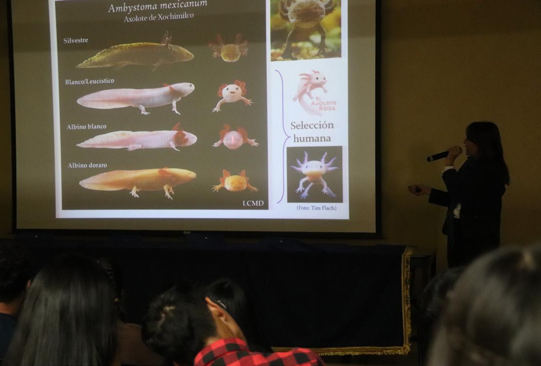 extinción del ambystoma (ajolote). Por su parte, el directivo de CCH Naucalpan felicitó la organización de este evento, al que incluyó dentro de los proyectos que transforman nuestro país a través de la ciencia, pues despiertan la curiosidad de los estudiantes por los estudios científicos que nos ayudan a construir “un mundo más humano, con esperanza y mayor conciencia ecológica”.