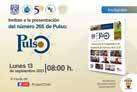 Pulso se reserva el derecho a publicar las colaboraciones recibidas en el número que considere adecuado. Pulso aparece todos los lunes publicado por el Departamento de Comunicación del Colegio de Ciencias y Humanidades Naucalpan, y sirve como medio de difusión. Los artículos e imágenes aquí contenidos son responsabilidad de sus autores. La impresión se realiza en los talleres del Colegio de Ciencias y Humanidades Naucalpan. Calzada de los Remedios número 10, colonia Los Remedios, Naucalpan, Estado de México, CP 53400.