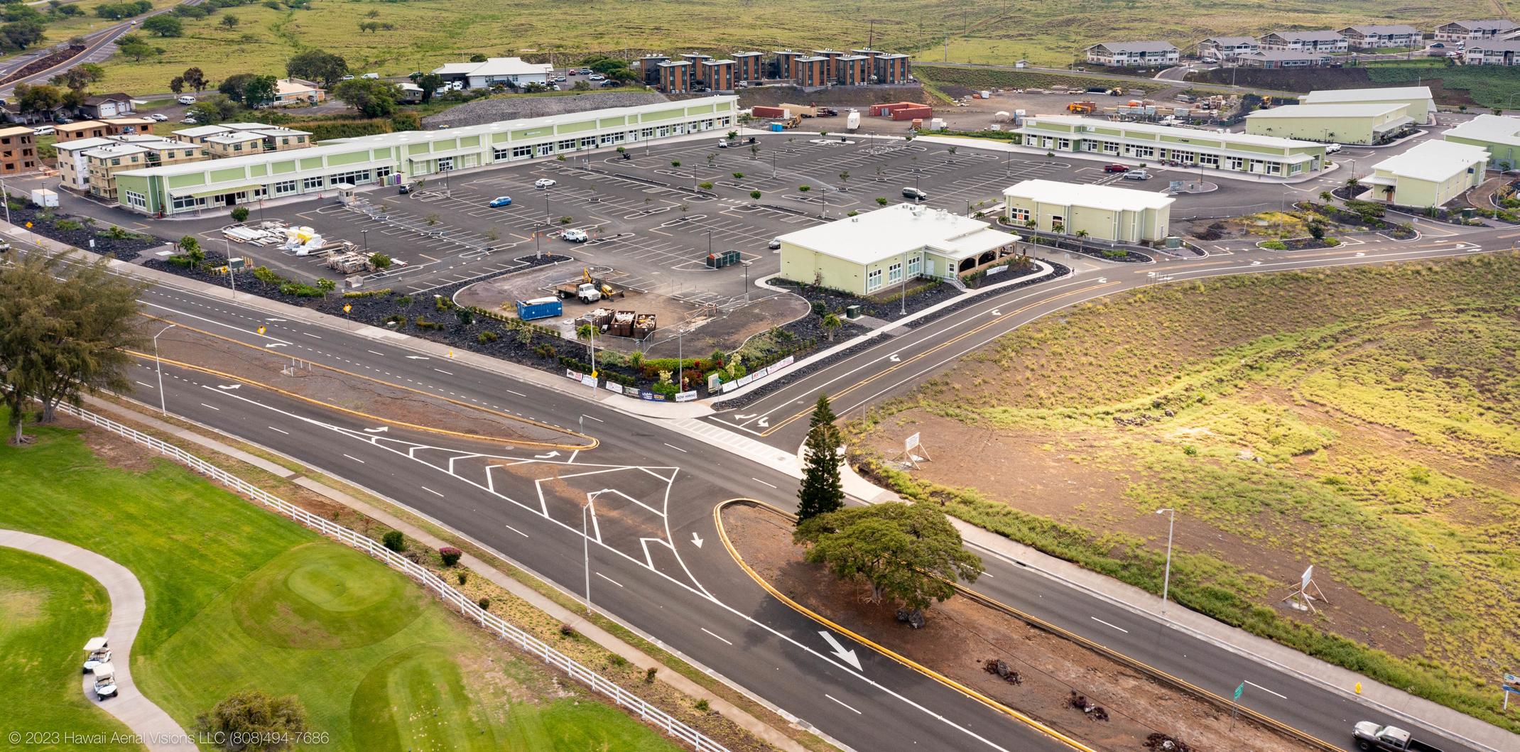 Throughout the site, parking lots are sealed and striped. Landscaping is thriving and filling in. HECO has energized the plaza, with tenant spaces to follow. Building F is available for lease and is 4,275 sq ft. and can be divided. Building K shell is finished, & available for lease and is 5,000 sq ft. and dividable. Siding is installed and lanai is finished all except the slab. Foodland plans are in the design phase.