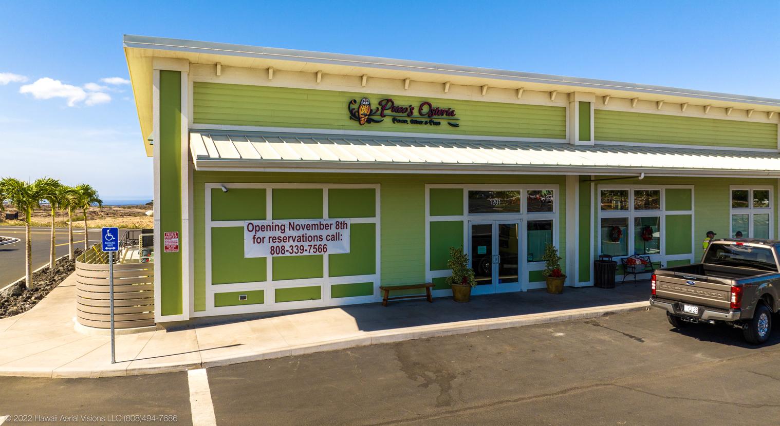 Building G (Pueo’s Osteria) Grand Opening was November 8th. They are open and serving dinner, Tuesday thru Sunday. Addition of lanai for G-102 has been permitted and construction will begin soon. G-102 is available for lease.