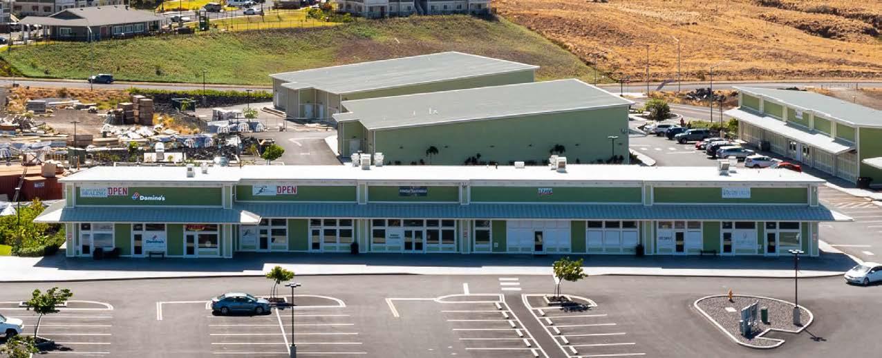 Building N is available for lease and is 3,231 sq ft. and can be divided into 3 spaces, N101, N102 and N103 at 1,084 sf, 1063 sf, 1084 sf respectively. Building K shell is finished & fully leased. Siding is installed and lanai is finished all except the slab. Foodland plans are in the design phase. L&L Barbeque & Fireart Cuisine are now open!
