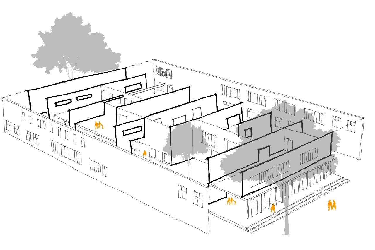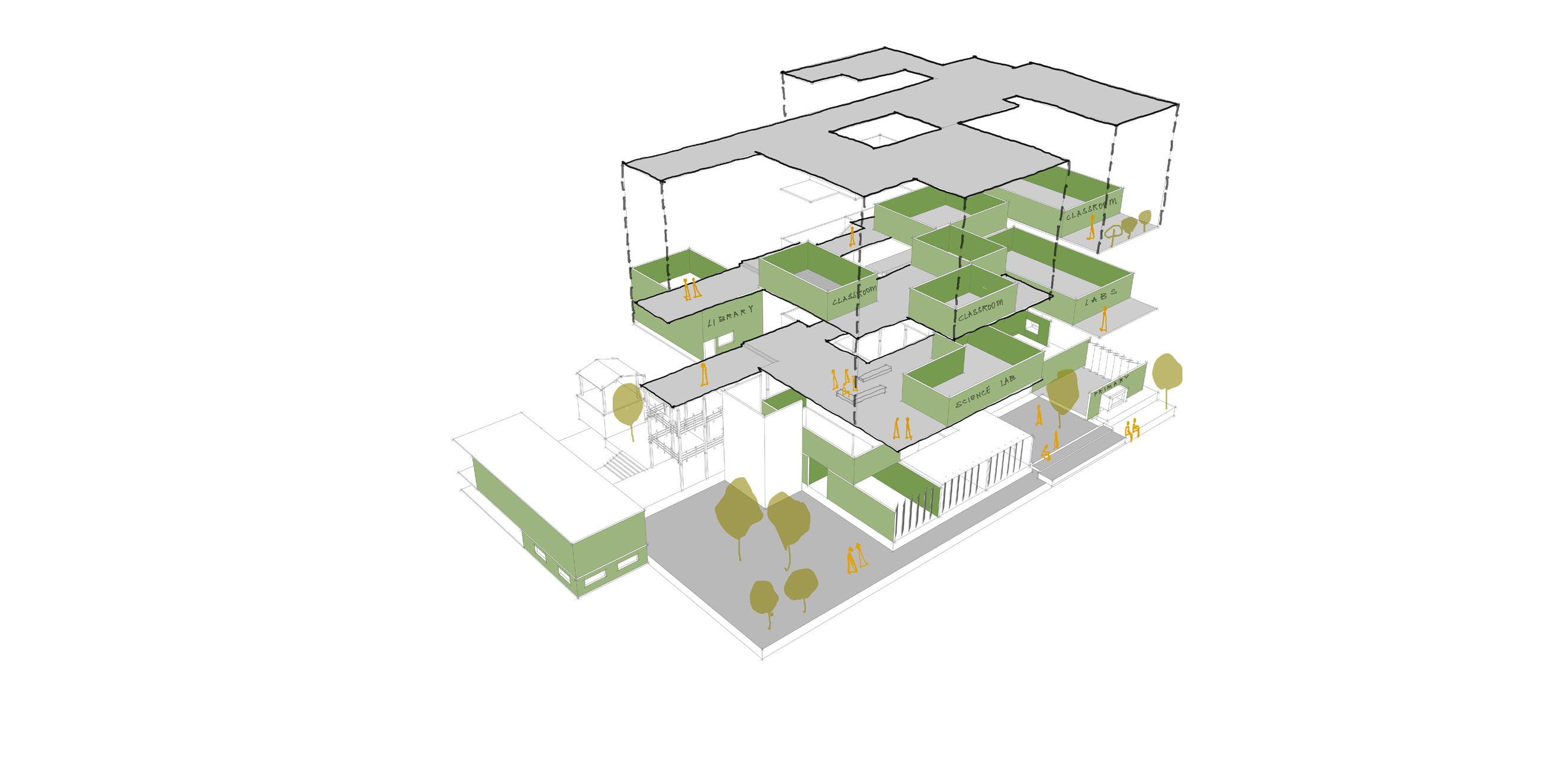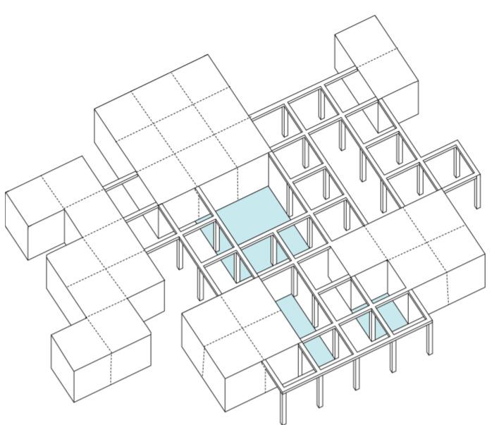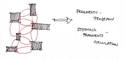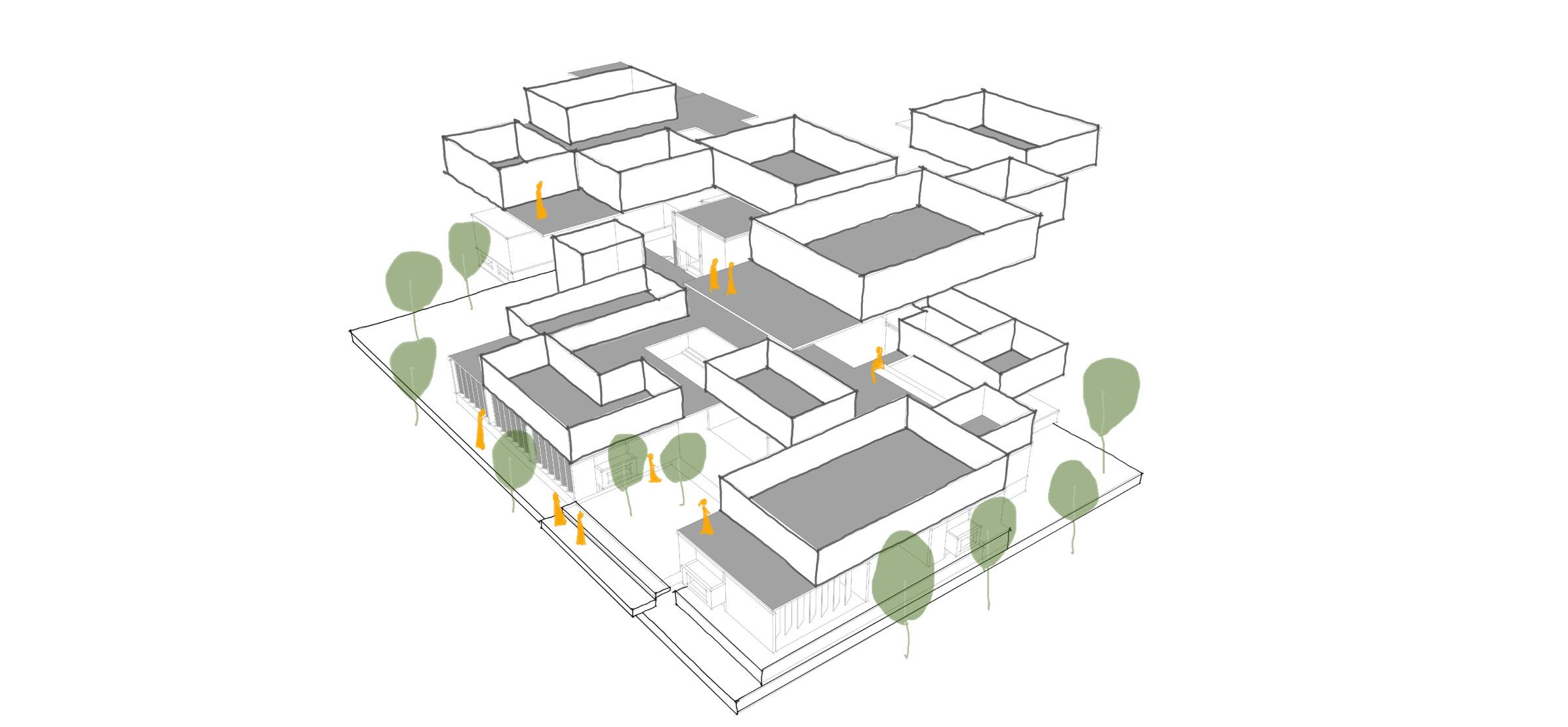 For example, if one site has ‘work’ and ‘leisure,’ it borrows the ‘living’ from the site beside. While it provides a way to interlink the sites, it also provides flexibility in associating programs.