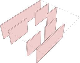 The symmetrical order of the facade was analyzed and broken down into grids which were reappropriated as the structural grid for the installation. The use of grids allowed for the development of three dimensional modules that could be used either as a pause point, a stop point or a play/circulatory space.