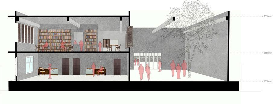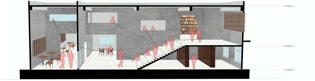 The existing spaces divided the lobby and exhibition making it two different spaces altogether. By breaking the rigidity of these two spaces, the circulation became more fluid.