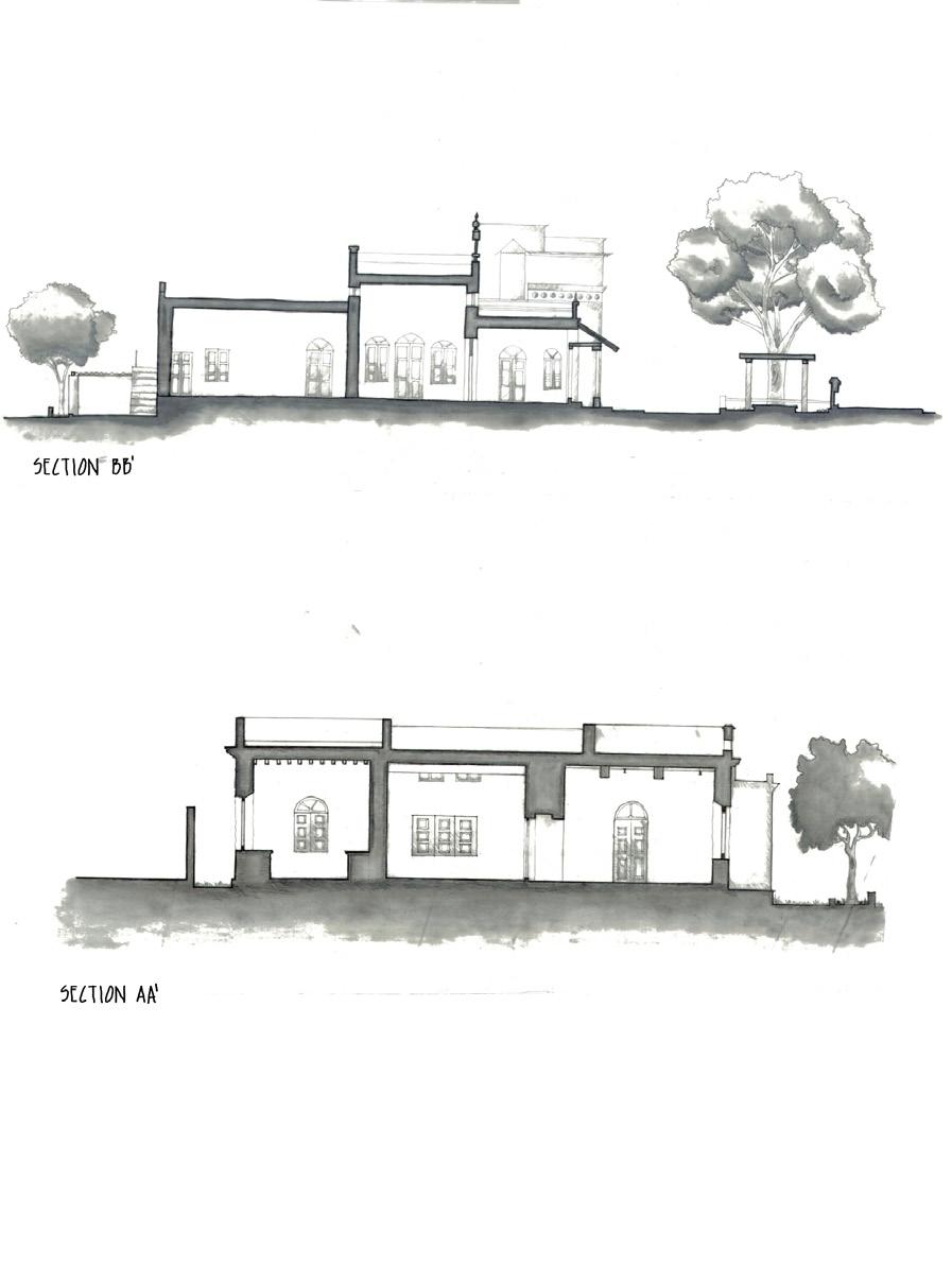 B A’ A Wooden Batten Door House Utility Door Facade Decoration Lime Plastered Carved wall Compound Wall Pillar Lime Plastered decorative wall Facade Wooden Column Painted Black Elevation Plan Wooden Shutter Window Bedroom Window Elevation Grilled Wooden Window Living Room Window Glass pane Wooden Window Kitchen Window Typical Window found In Plan