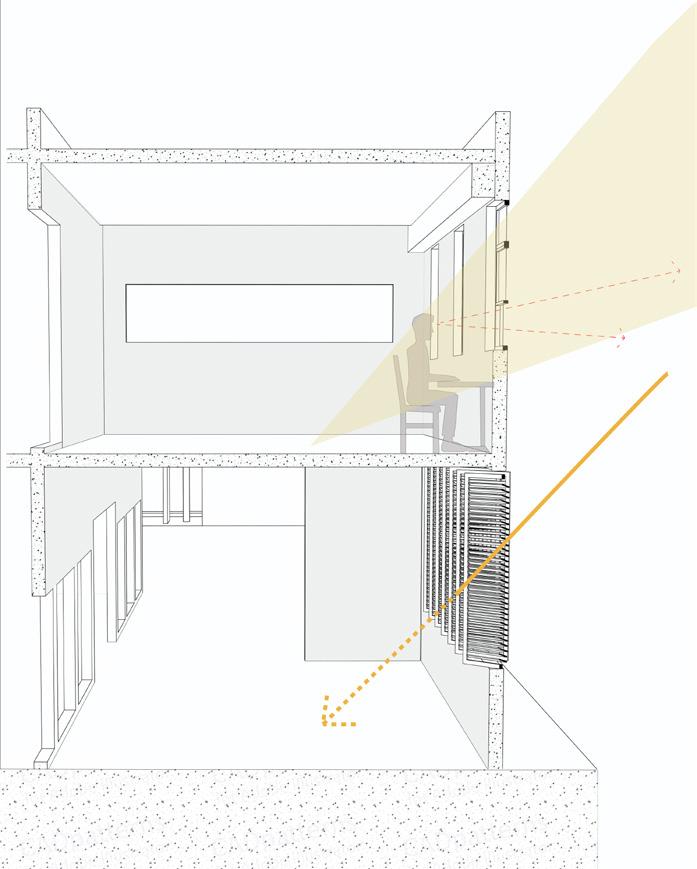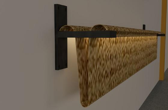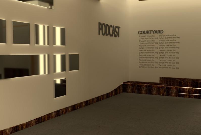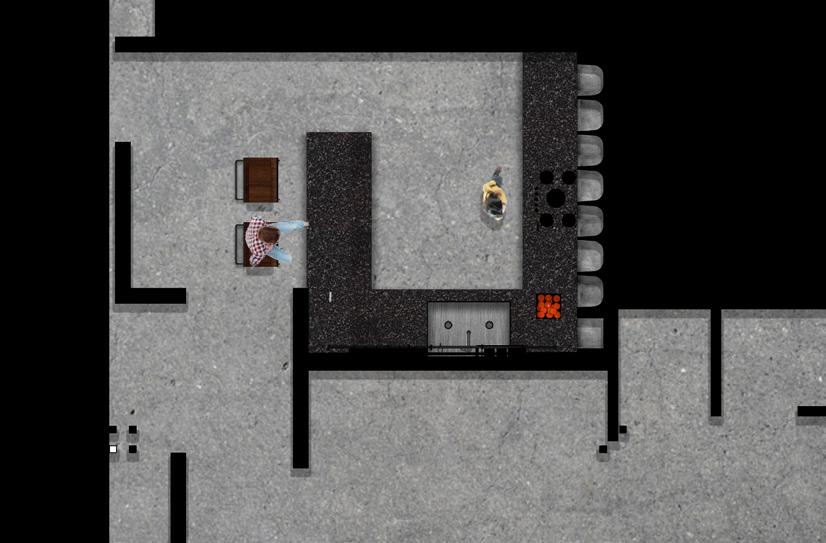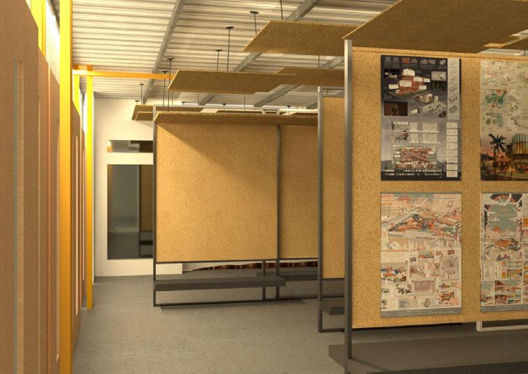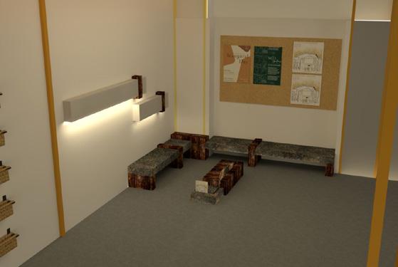 The idea is to highlight the exhibition space the way it is using colours and materials that coincides with the colourpalette of the context. An attempt to use simple aesthetics with minimally designed furnitures, all of which is accentuated mostly with light and materials.