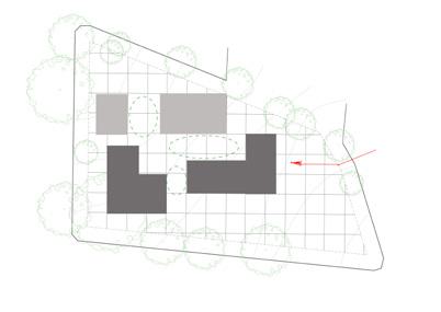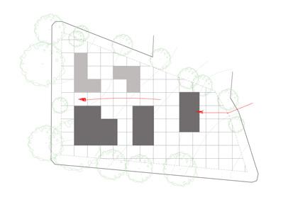 Sabarmati Ashram by Charles Correa is one of projects whose basic structure is formed by a grid. Correa plays with the order of the grids to create different forms of enclosures.