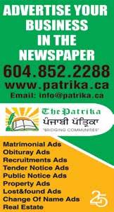 E-mail: Ronnie@patrika.ca www.patrika.ca