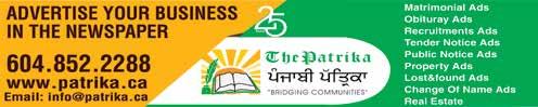 LOOKING TO BUY OR SELL? Contact Akash Today! VISI 111-2580 Cedar 14 YEARS OF EXPERIENCE “ B R I D G I N G C O M M U N I T I E S ” 604.852.2288 | T h e P a t r i k a Weekly | Friday, June 30, 2023 | Vol.27. No.41 | www.patrika.ca/e-newspaper | e:info@patrika.ca inrpwK, sqMqr aqy agFhvDU soc nMU prnfieaf hoieaf A SECULAR, INDEPENDENT & PROGRESSIVE NEWSPAPER Abbotsford, BC - (Head Office) Phone: 604-746-4888 Fax 604-746-4999 Hours of Operation : Mon-Fri: 9:00am - 8:00pm Weekends & Holidays: 10:00am - 6:00pm www.insurelinelighthouse.com #101 - 30485 Blueridge Drive, Abbotsford B.C., V2T 0B1 Home Insurance Super Visa Insurance Travel Insurance Commercial Insurance Townhome/Condo Insurance Construction Insurance Fleet Insurance Cargo Insurance Pro Rate Insurance Farm Insurance Gr dI ieMnsLorYNs supr vIjLf ieMnsLorYNs tRYvl ieMnsLorYNs kmrsLIal ieMnsLorYNs tfAUn hfAUs/ kONzo dI ieMnsLorYNs knstRwksLn dI ieMnsLorYNs PlIt ieMnsLorYNs kfrgo ieMnsLorYNs pRo ryt ieMnsLorYNs Pfrm dI ieMnsLorYNs HOME INSURANCE DISCOUNT CARGO PRO-RATE FLEET LMIA AVAILABLE GET A FREE PITA WRAP-WHEN YOU SIGN-UP 604-744-1413 PICK UP, DELIVERY & CATERING Sevenoaks Shopping Centre WHEN YOU BUY ANY OPA PLATTER OR PITA WRAP MEAL GET FREE SALAD OR FRIES kYnyzf zya dIaF vDfeIaF canada day HAPPY Happy kYnyzf zya dIaF vDfeIaF CANADA DAY #103-2353 PEARDONVILLE RD ABBOTSFORD CALL 604 744 9991 , 778 834 4045 HAPPY CANADA DAY