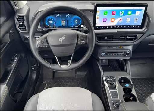 Interior wise there is a modern well integrated cabin, with comfortable seats and good ergonomics. The 2025 model features the new SYNC 4 infotainment system, providing a modern and user-friendly experience. The double-stitched dashboard is a nice touch along with the available rubberized flooring and marine-grade vinyl upholstery for rugged use. Creature comforts abound with such features as heated seats and steering climate controls directly under the now larger touchscreen. There is Sirius satellite radio, and navigation. Apple CarPlay and Android Auto compatibility is standard. The Ford Co-Pilot360 driver assist technologies is also standard on all models. Moving to the rear, the Bronco Sport offers storage space within the rear seats. Those rear seats