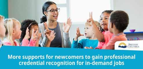 “This investment will provide critical support to newcomers going through the credential recognition process to use their skills and knowledge in indemand jobs and help reach their fullest potential,” said Selina Robinson, Minister of Post-Secondary Education and Future Skills. “In addressing the workforce challenges through this investment and our StrongerBC: Future Ready Action Plan, our government is making education and training more accessible for people who call B.C. home.”