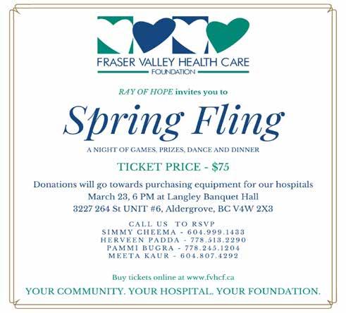 “ B R I D G I N G C O M M U N I T I E S ” 604.852.2288 | T h e P a t r i k a Weekly | Friday, March 22nd, 2024 | Vol.28. No.27 | www.patrika.ca/e-newspaper | e:info@patrika.ca inrpwK, sqMqr aqy agFhvDU soc nMU prnfieaf hoieaf A SECULAR, INDEPENDENT & PROGRESSIVE NEWSPAPER Abbotsford, BC - (Head Office) Phone: 604-746-4888 Fax 604-746-4999 Hours of Operation : Mon-Fri: 9:00am - 8:00pm Weekends & Holidays: 10:00am - 6:00pm www.insurelinelighthouse.com #101 - 30485 Blueridge Drive, Abbotsford B.C., V2T 0B1 Home Insurance Super Visa Insurance Travel Insurance Commercial Insurance Townhome/Condo Insurance Construction Insurance Fleet Insurance Cargo Insurance Pro Rate Insurance Farm Insurance Gr dI ieMnsLorYNs supr vIjLf ieMnsLorYNs tRYvl ieMnsLorYNs kmrsLIal ieMnsLorYNs tfAUn hfAUs/ kONzo dI ieMnsLorYNs knstRwksLn dI ieMnsLorYNs PlIt ieMnsLorYNs kfrgo ieMnsLorYNs pRo ryt ieMnsLorYNs Pfrm dI ieMnsLorYNs HOME INSURANCE DISCOUNT CARGO PRO-RATE FLEET BC’s Only Bilingual Newspaper Since 1996. 1996 qoN Cpx vflf ibRitsL kolMbIaf df pihlf do-BfsLIaf aKLbfr PAR PABLA 778-823-2278 Real Estate Representative We Are Looking For Listing In Your Area ! real.parpabla@gmail.com Contact Par today! Specializing in Residential and Agricultural Properties BUYING OR SELLING ? T H A NK YOUFORSUPPORTING YOUR PHARMASAVEWESTR DGE T E A M Now Open in your neighbourhood Westridge Pharmasave Mom to Fri: 9:00am-6:00pm Saturday: 10:00 am-2:00pm | Sunday: Closed Blister Packaging Free Delivery Blood Pressure Monitoring Diabetes Education OPEN 6 DAYS A WEEK hPqy ivwc 6 idn Kuly hn Phone: 604.776.3111 Fax : 604.776.3110 #105-3670 Townline Rd. Abbotsford, BC. Pharmacist can now prescribe for common ailments Pfrmfisst hux quhfnUM dvfeIaF pRskrfeIb kr skdy hn bilstr pYkfijMg muPLq ivwc zilvrI blwz prYsLr monItr sLUgr dI ibmfrI bfry jfxkfrI vYstirwj Pfrmfsyv aMgryjI, pMjfbI, ihMdI ivwc dvfeIaF dI jfxkfrI Westridge Pharmasave pMjfbI pwiqRkf vloN ivsfKI ivsLysL aMk adfrf pMjfbI pWiqRkf vloN 12 apYRl idn sWukrvfr nMU ivsfKI ivsLysL aMk kwiZaf jf irhf hY so bynqI hY ik jy iksy ny vDfeI sMdysL df iesLiqhfr dyxf hovy qF Auh 5 apRYl idn suwkrvfr qwk pMjfbI pWiqRkf dy dPqr 604-852-2288 qy sMprk kr skdy hn lyKk qy kvI afpxy lyK aqy kivqfvF vI Byj skdy hn. ivsLysL not : Kflsf sfjnf idvs nMU smripq gurduafrf sfihb Kflsf dIvfn susfietI vYnkUvr vloN 13 apRYl qy gurduafrf sfihb dsmysL drbfr srI vloN 20 apYRl nM mhfn ngr kIrqn krvfey jf rhy hn. L e a r n m o r e a t w w w . a b b o t s f o r d . t e c h . ieh